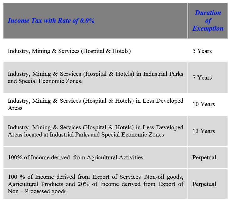 - 20 years’ tax exemption for all economic activities